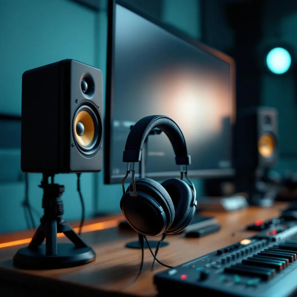 除了耳機,監聽喇叭的配置需考慮聲學空間特性。在典型的導播室中,應採用「等邊三角形佈置法」,即兩支監聽喇叭與導播頭部的距離應完全相等。喇叭高度應與耳朵齊平,並使用隔離墊減少控制台桌面的共振。針對中小型控制室,建議選用具備 DSP 校正功能的近場監聽喇叭,以補償室內驻波造成的頻率扭曲。