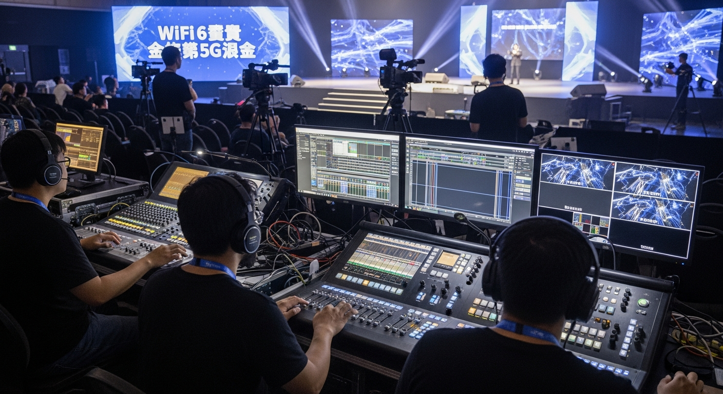 在規劃大型活動時,我們的「黃金法則」是:核心切換台 (Switcher) 與主編碼器 (Encoder) 必須鎖定在實體有線網路上。無線技術 (5G/WiFi 6) 僅應作為移動攝影機的訊號回傳手段,或是作為第三順位的網路備援路徑。在設計 Signal Flow 時,永遠要假設無線訊號會在最關鍵的時刻產生中斷,因此設置適當的緩衝延遲與自動切換機制是技術總監的必修課。